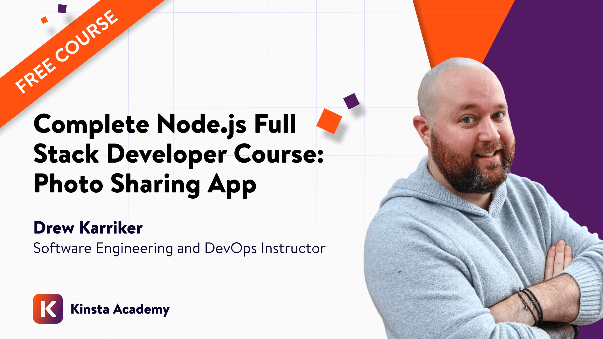 Watch and code along with Drew, expert DevOps instructor (and former nuclear engineer), in a brand new Node.js Full Stack Developer course. Learn about Node.js, npm, EJS, MariaDB, and Express while you build a photo-sharing app. It's free!